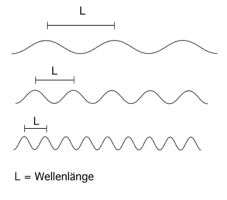 Eine wichtige Eigenschaft elektromagnetischer Wellen ist ihre Wellenlänge (L). Die Wellenlänge bezeichnet den Abstand von einem Wellenberg zum nächsten (siehe Abb. 1). In der Natur kommen Wellen unterschiedlichster Wellenlängen vor, so dass uns ein kontinuierliches Spektrum elektromagnetischer Wellen umgibt (siehe Abb. 2). Röntgenstrahlen und Radiowellen gehören ebenso dazu wie Mikrowellen und das sichtbare Licht.