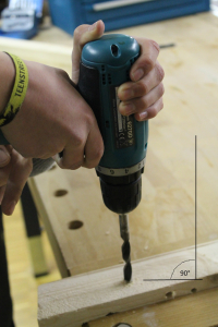 - Bohrmaschine im senkrechten Winkel zur Bearbeitungsoberfläche ansetzen