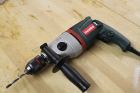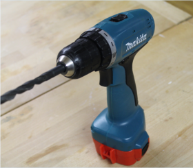 - Beim Durchgang des Bohrers durch das Material den Bohrer weiterlaufen lassen, während man ihn wieder durch das Loch herauszieht