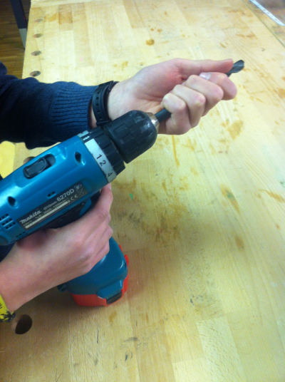 - Auf den Bohrer passend viel Druck anwenden und die Bohrmaschine durch das Material führen
