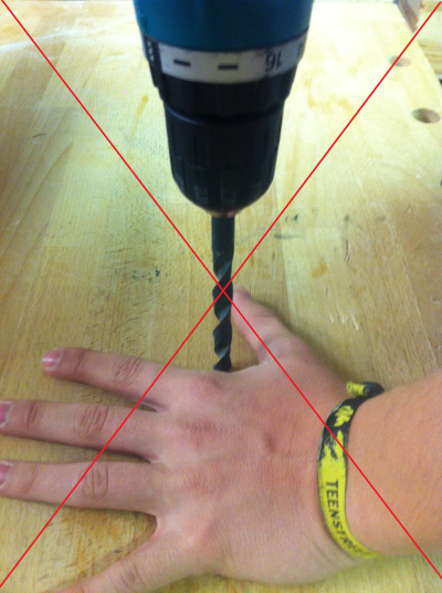 - Bei Bedarf an sauberen Rändern eine Unterlage zum Durchbohren benutzen