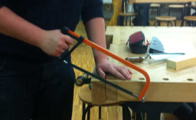 Die Metallsäge ist für Metall am Besten geeignet. Ihre Zacken sind nicht symetrisch angeordnet, damit sie im Metall nicht stecken bleibt. Deshalb muss man mit ihr auf Druck arbeiten. Sie wird in einem rechten Winkel angesetzt.